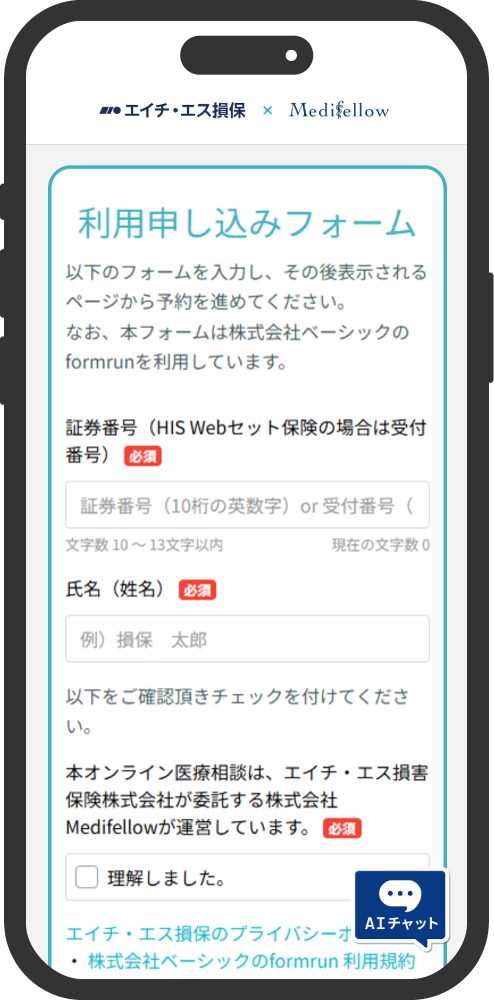- 「オンライン医療相談サービス」はエイチ・エス損保が提携(委託)するMedifellow社が提供しているサービスです。