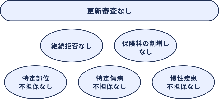 加入時からの条件に変更や追加なく、安心して終身継続いただけます。