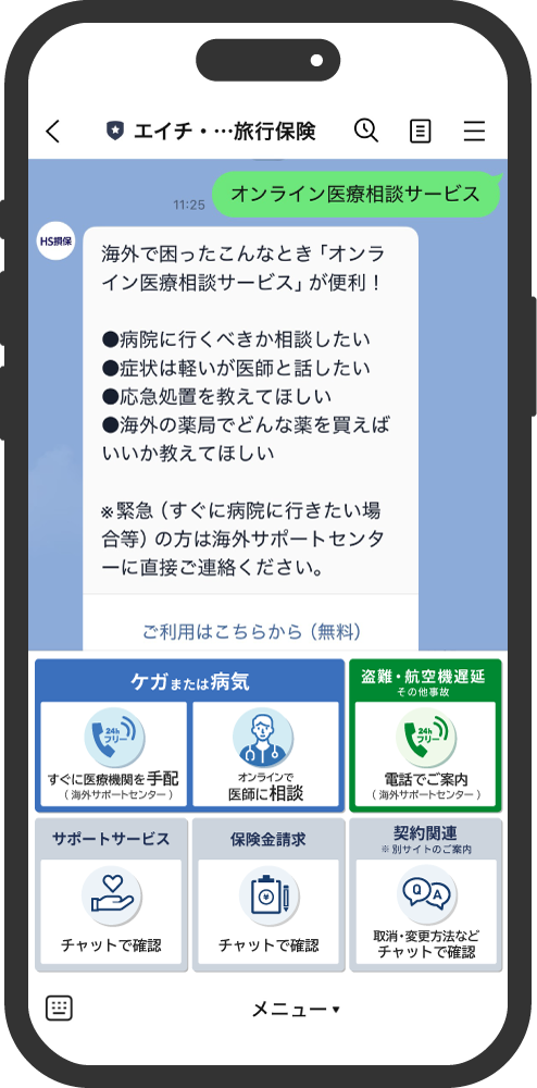 ※ LINEでの無料通話を使用するには、「エイチ・エス損保」の公式アカウントを検索して、友だち追加する必要があります。(通話にかかる通信料はお客さまの負担となります。)